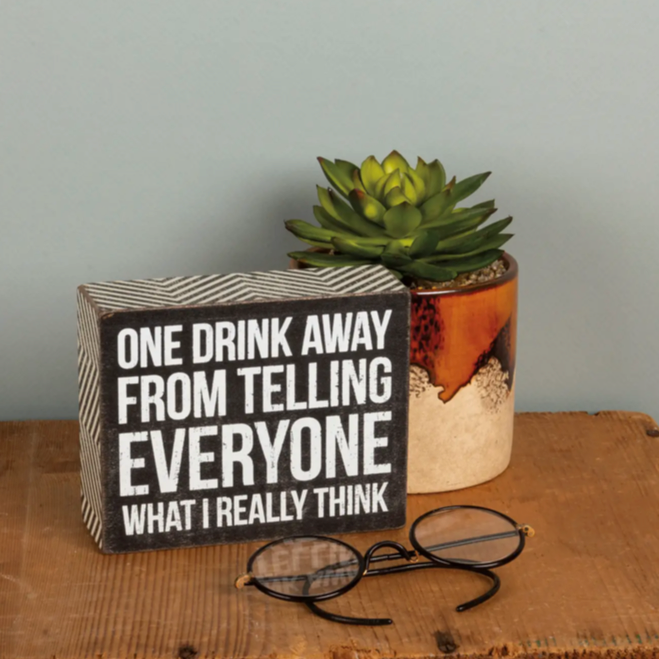 One drink away from telling everyone what I really think wood sign. Approximately 2x4x4